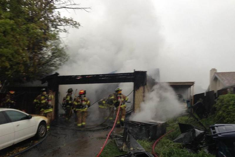A photo posted on the fire district’s Twitter account showed heavy damage to the home, with plumes of smoke drifting from charred remains of what once was the roof of the garage.
