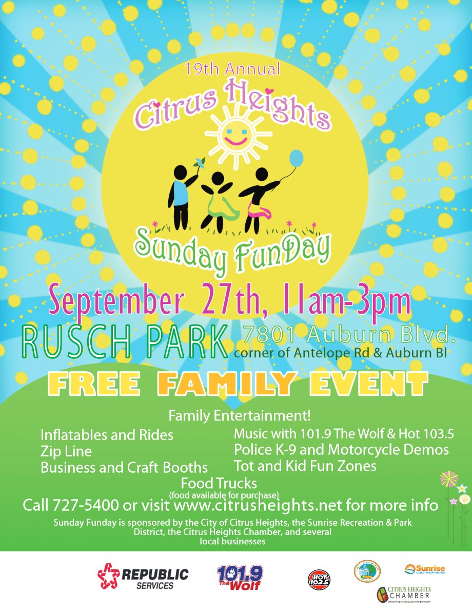Sunday FunDay sponsors include the City of Citrus Heights and chamber of commerce, as well as the Sunrise Recreation and Park District and several local businesses.