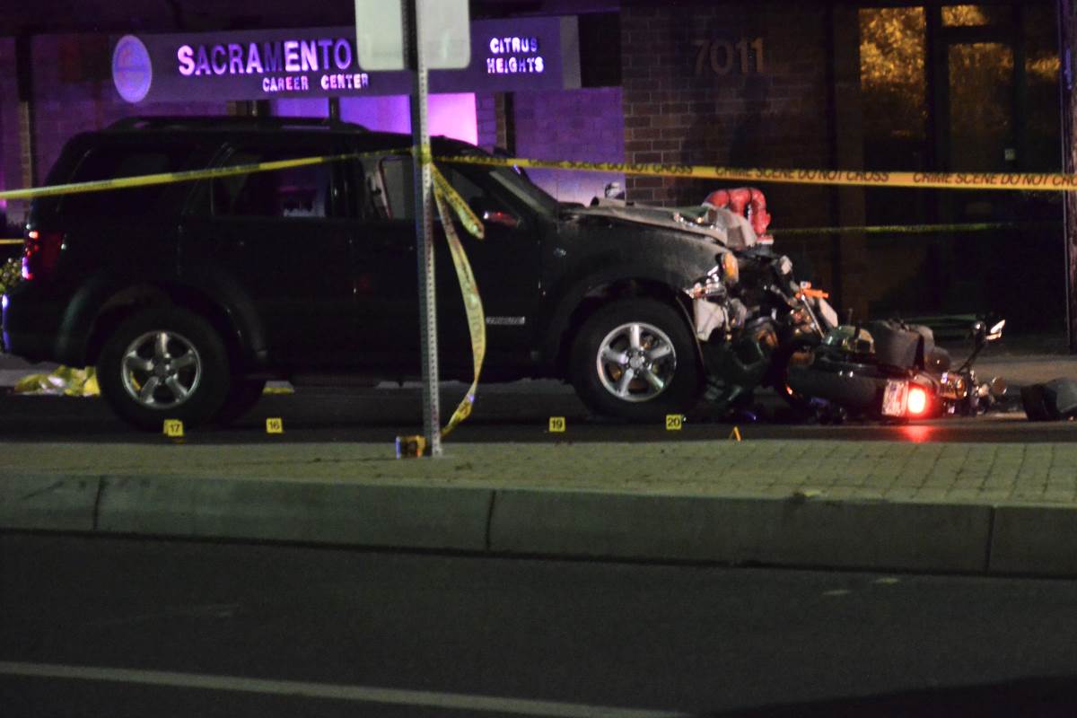 A collision involving an SUV and motorcyclist caused both directions of traffic on Sylvan Road to be shut down for several hours Friday night, with a Citrus Heights police officer on scene confirming the crash resulted in a fatality.
