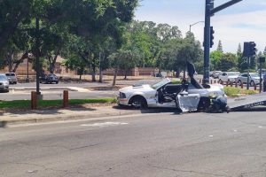 A two-vehicle collision resulting in a vehicle bursting into flames briefly shut down a local intersection Wednesday morning…
